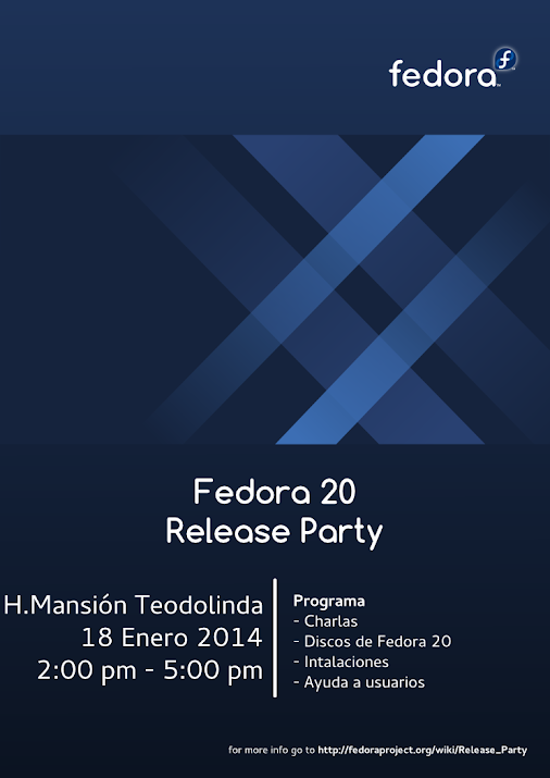 La comunidad de usuarios y colaboradores de Fedora en Nicaragua tiene el agrado de invitarlos a la fiesta de lanzamiento de Fedora 20 el día 18 de Enero del 2014 en el Hotel Mansión Teodolinda desde las dos de la tarde.